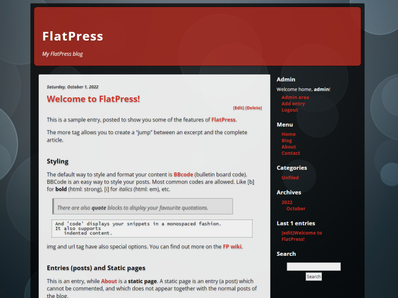 Vytvořili jsme další ukázkový obsah, abychom vám ukázali některé skryté funkce a vychytávky FlatPressu :)